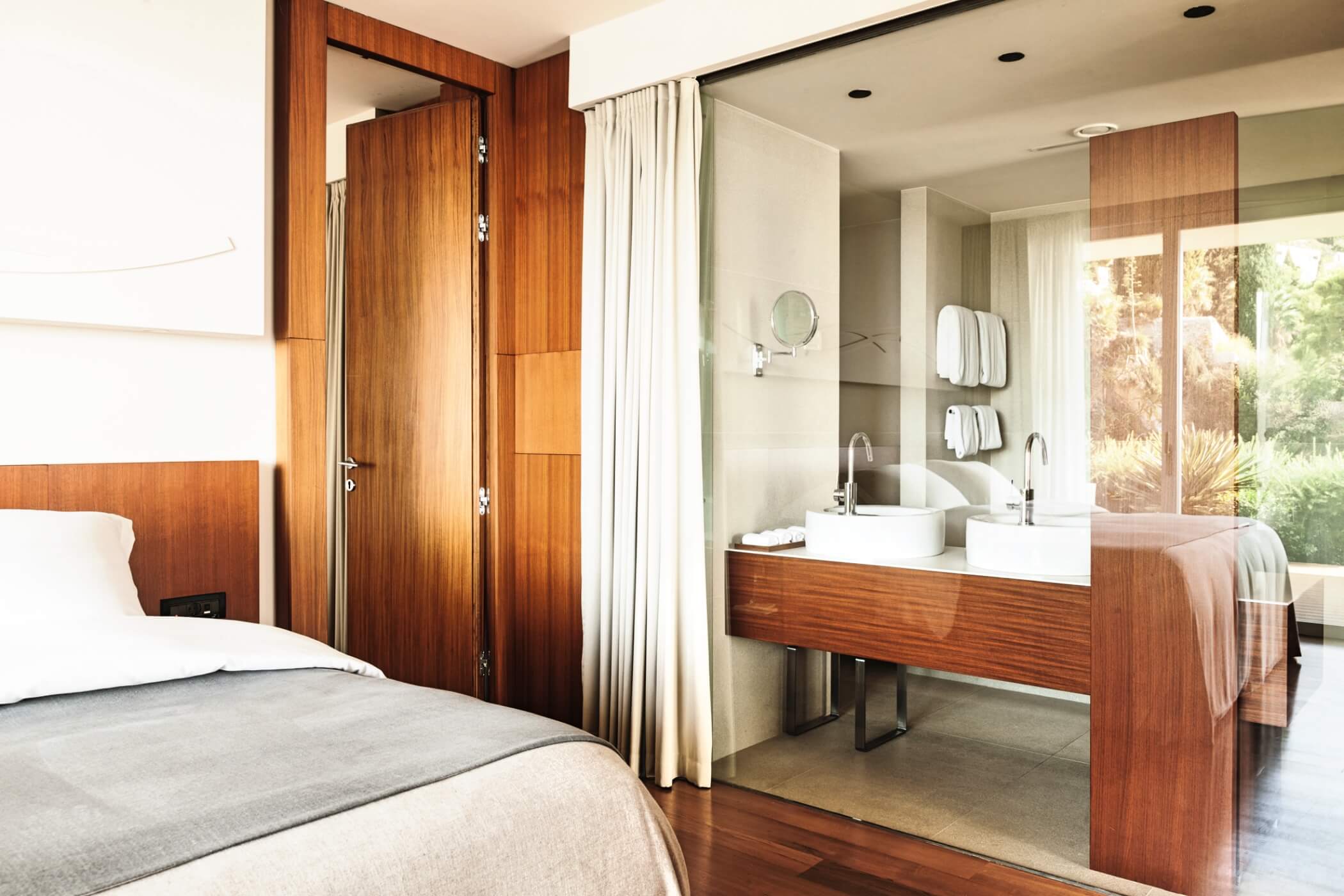 Measuring generous 74 sqm the Deluxe Suite provides a separate living and sleeping area and spacious en suite glass wall bathroom with double basins.